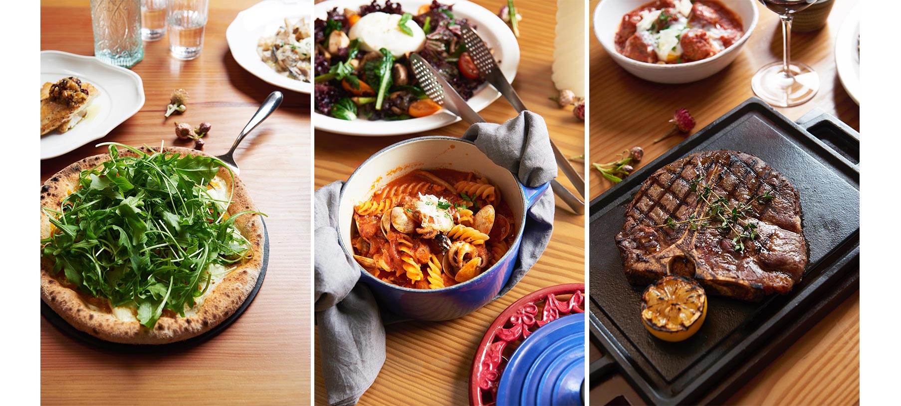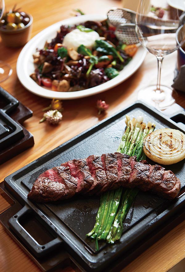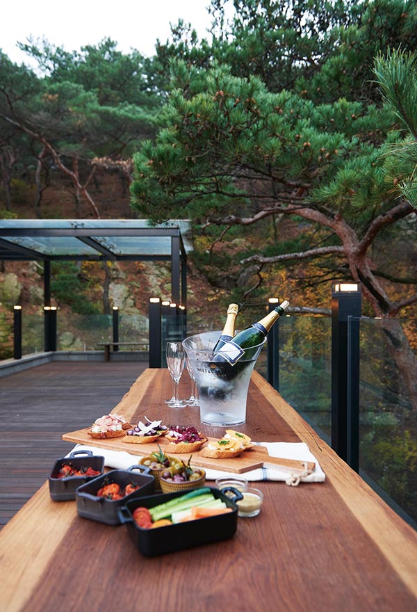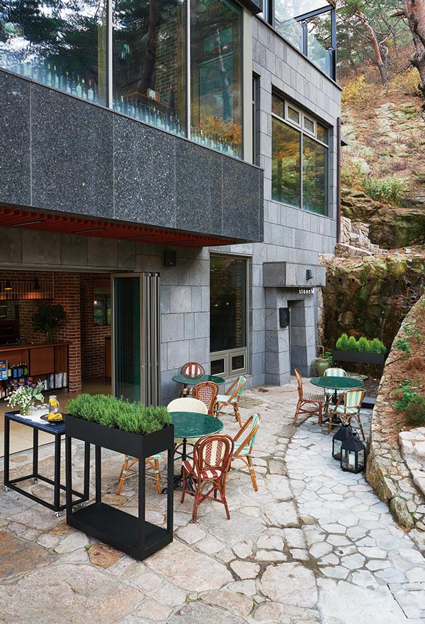 'Italian Dining with a View', 스톤힐의 매력은 건물 어느 곳에서나 북한산의 정취를 만끽하며 편안하고 따뜻한 이탤리언 음식과 와인을 즐길 수 있다는 점입니다. 1층의 오픈 키친, 2층과 3층의 실내와 야외 테라스, 돌산의 질감이 그대로 느껴지는 독특한 분위기의 연결 계단까지 자연의 정취를 누릴 수 있습니다. 커다란 통창을 통해 쏟아져 들어오는 햇살과 눈부신 풍경은 이곳 이 서울이라는 것을 잊게 하기 충분합니다.